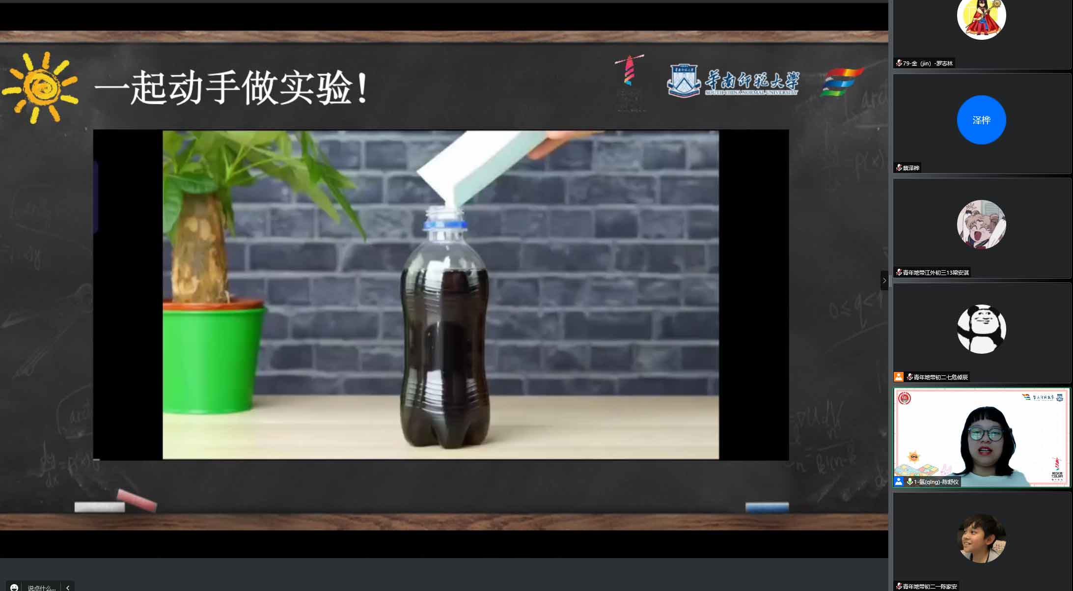 為積極響應(yīng)黨和國家提升全民科學素養(yǎng)的號召,進一步推動基層科普工作有序進展,以重點人群科學素質(zhì)行動帶動全民科學素質(zhì)整體水平跨越提升,華南師范大學化學學院“立德效賢杏壇流芳,春風化雨筑夢鵬程”實踐服務(wù)隊以學生文化素質(zhì)提升為落腳點,堅持化學科學普及,同時將化學知識與游戲相融合,采用線上線下相結(jié)合的方式,面向三地十余所中學開展了豐富有趣的課程。此次課程主要面對肇慶市鼎湖區(qū)實驗中學、廣州市從化龍?zhí)吨袑W和廣州市海珠區(qū)“青年地帶”駐校項目的同學們。本次夏令營教學活動至今已開展4天,但同學們依舊熱情不減、滿懷期待地開始了新一天的學習之旅。