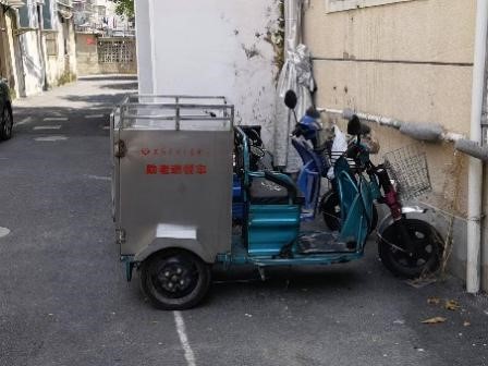 (圖為中心送餐車實物) ( 圖為中心老人用餐場地:長者食堂)