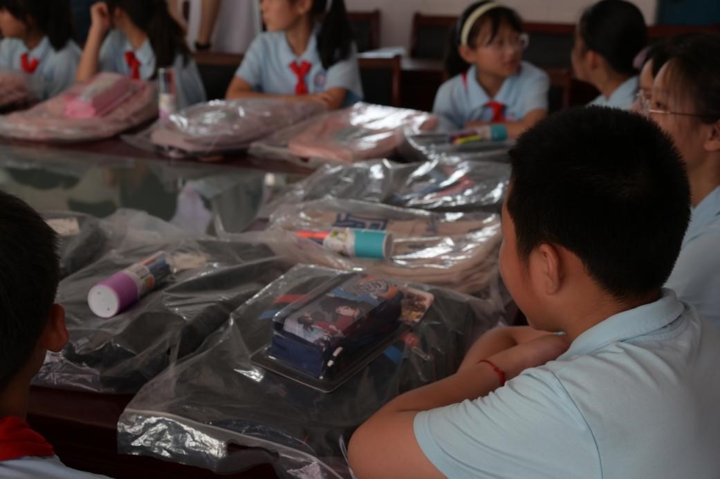 實(shí)踐團(tuán)隊(duì)精心為同學(xué)們準(zhǔn)備書包、文具袋以及彩筆等文具。“希望小小書包能承載起他們的快樂與夢想,多彩的畫筆能繪出他們精彩美麗的人生藍(lán)圖。”實(shí)踐團(tuán)隊(duì)負(fù)責(zé)人說。看到嶄新的書包和學(xué)習(xí)用品,同學(xué)們十分開心,紛紛表示要努力學(xué)習(xí)、奮發(fā)拼搏,以優(yōu)異的成績回報(bào)社會(huì),并努力將愛心接力棒傳遞下去。