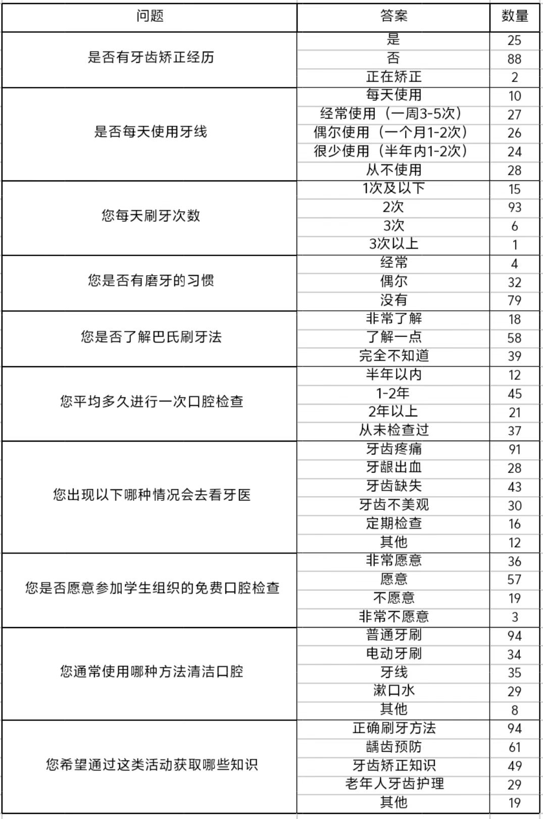 在活動期間,團隊精心設計了采訪問卷,內容涵蓋日常刷牙習慣、常見的口腔問題困擾、護牙知識儲備等多個方面,力求全面了解師生的口腔健康情況。通過走進校園,團隊成員與師生近距離溝通,不僅收集到了寶貴的數據,還為參與者提供了個性化的口腔健康建議。