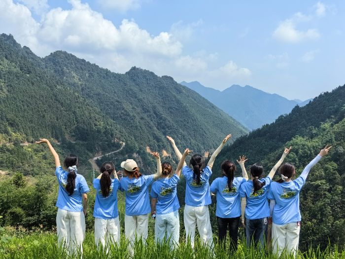 旗幟之上,染著朝霞與鄉土的光輝;旗幟之下,是一張張年輕而堅定的臉龐——那是比千言萬語更鏗鏘的誓言。一顆顆怦然跳動的心,被裹在藍色的志愿服中:既有叩問鄉野的赤子之心,更有將“百千萬工程”刻入茶園、寫進梯田的堅定決心。這抹藍,是天空倒映的溪水,也是我們獻給鄉村振興最清澈的告白。