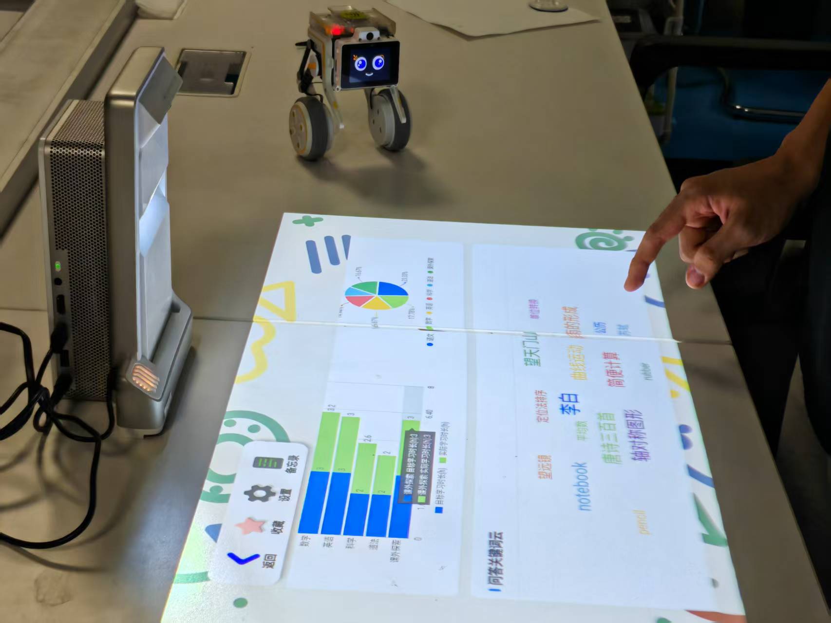 而在另一個對語文學習興趣不大的孩子家里,團隊成員主攻“課本學習”模塊。當投影儀將課文《海底世界》以動態的海洋生物和深邃的藍光效果呈現出來時,孩子情不自禁地發出了“哇”的驚嘆。機器人隨即化身知識淵博的海洋導游,解答著孩子一個個突如其來的“為什么”。原本靜態的文字,變成了可探索的奇妙世界。