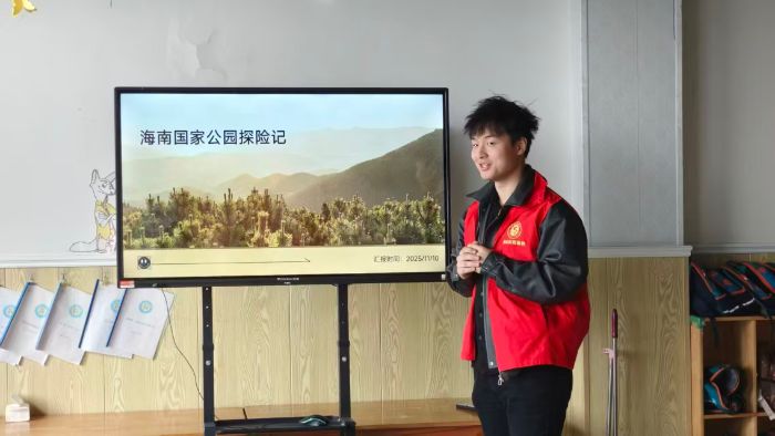 宣講伊始,志愿者們便憑借一幅幅色彩斑斕的實景圖片、一段段鮮活靈動的科普視頻,拉開了海南熱帶雨林國家公園的神秘面紗:云霧繚繞的雨林秘境、憨態可掬的海南長臂猿、姹紫嫣紅的奇花異草、靈動穿梭的珍稀生靈……