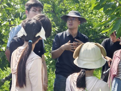 結合多學科交叉優勢,實踐隊開展田間課堂與實操訓練。在教師帶領下,隊員學習櫻桃樹精細化管理技術,包括科學壓枝和樹形改造等方法,以優化樹體結構、改善光照條件,提升果品產量與質量。同時,生物學院教師組織櫻桃深加工技術培訓,涵蓋櫻桃酒釀造等環節,實踐隊在此基礎上撰寫產業發展報告,提出開發功能性產品與建立質量溯源體系等建議,為提升產品附加值提供支持。