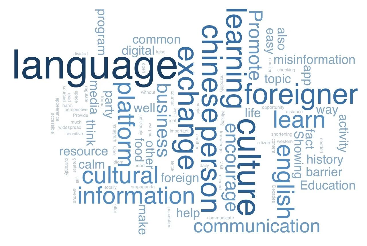 調研結束后,路隊迅速投入數據整理與分析工作,完成錄音轉錄、語料翻譯、詞云可視化及影像編輯等一系列任務,將訪談內容轉化為可傳播的圖文與數據報告。通過對“跨文化交際中遇到的障礙”這一開放問題的答案進行詞云分析,團隊發現:語言障礙仍是首要挑戰,文化差異易導致意想不到的誤解,而缺乏高效、便捷的交流平臺也制約了更深層次的對話。青年們普遍期待更多互動性強、能共同創造內容的交流方式,如“互訪游學”“聯合線上項目”等。