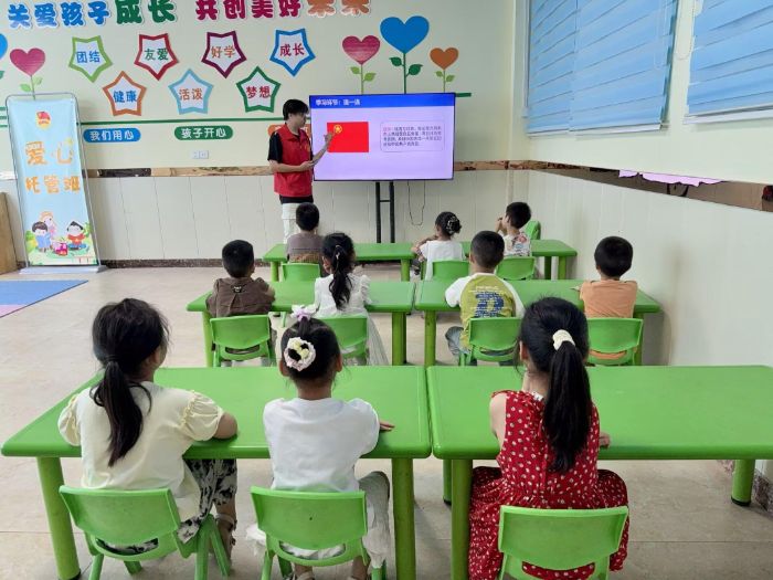 與此同時,王家坪村委會的課堂則聚焦紅色教育與實踐能力培養。紅色文化課上,隊員們講述的革命先烈奮斗故事,如春雨般浸潤孩子們的心靈。當聽到先烈們為理想拼搏的歷程時,孩子們瞪圓的眼眸中既有對歷史的好奇探尋,更涌動著日漸升騰的敬意,紅色基因的傳承在專注的聆聽中悄然進行。手工黏土課上,五彩黏土在孩子們手中被捏塑成圓滾滾的“冰淇淋”等可愛造型,孩子們舉著作品展露的燦爛笑容,成為當日最治愈的風景,動手實踐的樂趣與成就感在互動中充分釋放。