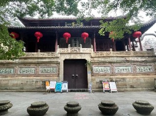 首先,調查團隊來到了嵊州市越劇小鎮,這里風景宜人,圍青山綠水,寧靜自然,安靜、清雅,遠離塵囂。這里有至今保存最為完整的古戲樓,被譽為越劇屆的金色大廳,并且其中的古戲臺也任在使用。它是中國戲樓文化最為經典的傳承與創新,見證著百年越劇回溯源頭的悠遠歷史,更承擔著為120個"天下第一團"安家和激活的文化藝術使命。殷紅色的燈籠映照著臺下的圈椅、茶幾,紅木搭建的戲臺莊嚴而宏偉,調查隊員們不禁肅然起敬、贊嘆不已。