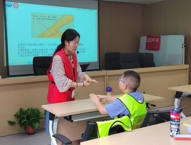 7月26日,南京中醫(yī)藥大學青年志愿者協(xié)會“志”惠萬家實踐團在南京市來鳳街新時代文明實踐站、青年之家,為小朋友們帶去了中醫(yī)藥文化宣傳課程,介紹了四診法、五禽戲、五行學說、經(jīng)絡、腧穴等中醫(yī)藥相關知識。為了讓小朋友們更好地聽懂、理解中醫(yī)藥相關知識,寓教于樂,課程中穿插了有趣的小游戲環(huán)節(jié),調動了小朋友們聽課的積極性。