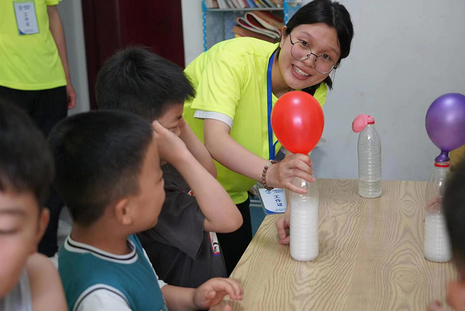 超級科技大講堂,動手實踐啟夢想為了拓寬孩子們的科技視野,提高孩子們的動手能力,團隊來到商丘市民權縣鄉村小學,為學校學生開展一次超級科技課堂。實踐隊員們結合在科技館當志愿者的經驗解決了孩子們的疑惑。在實踐隊員的講解和協助下,孩子們完成了每一個小實驗體會到了科學的力量。實踐隊員則通過這次超級科技課堂感受到了志愿服務的魅力。