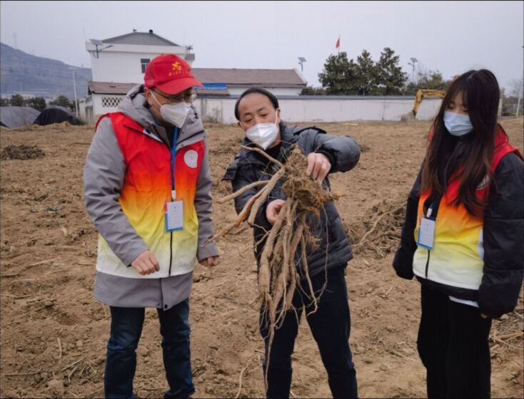 團隊在種植基地向種植戶學(xué)習(xí)認識虎杖。中國青年通訊員 王玥 供圖。