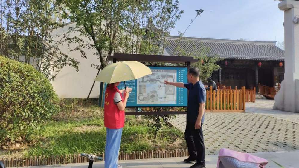 圖為古建筑小分隊隊員認真聽取當地工作人員對古建筑群布局以及文化知識的講解。通訊員 張書瑋 供圖