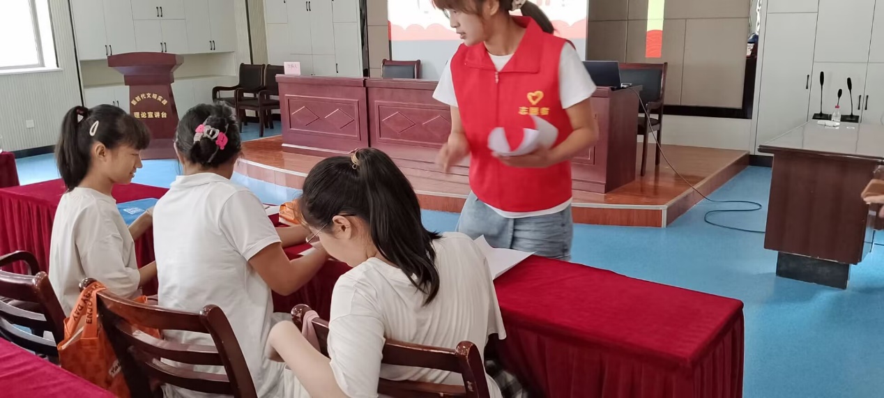 圖為實踐隊員給小朋友們分發(fā)繪畫紙張。通訊員 陳露 供圖