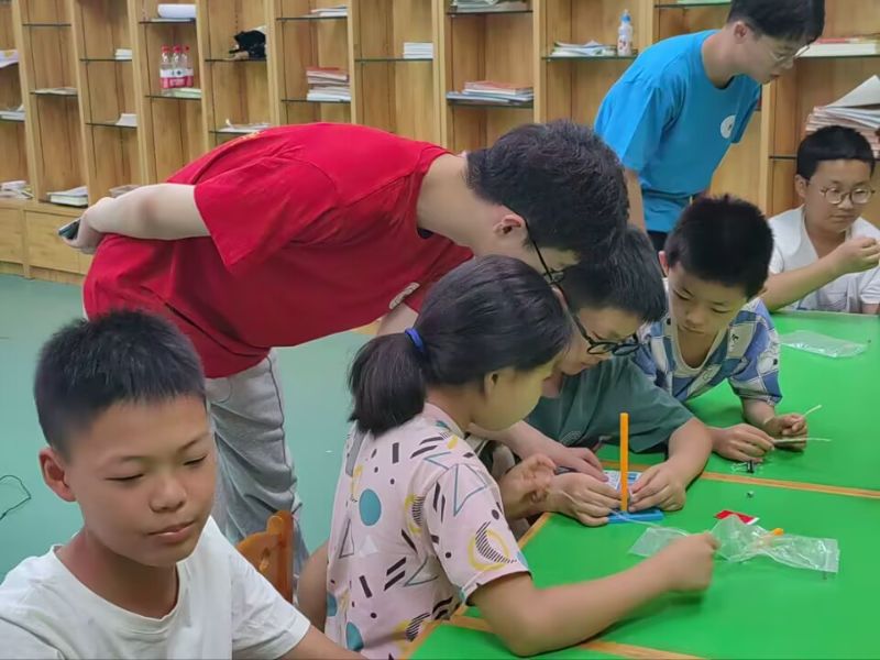 在此次活動中,我們近距離,與小朋友們進行趣味互動。在創新創造宣講中,實踐隊員們與小朋友們共同制造牛頓擺,在制作的過程中,深入了解牛頓擺原理,大大的激發了小朋友們的好奇心,增強了他們對創新創造的興趣。