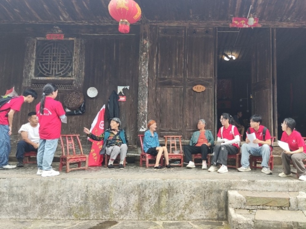 (此圖為三下鄉(xiāng)小隊(duì)和當(dāng)?shù)卮迕窳奶炝私馇闆r,通訊員李雯思所攝)