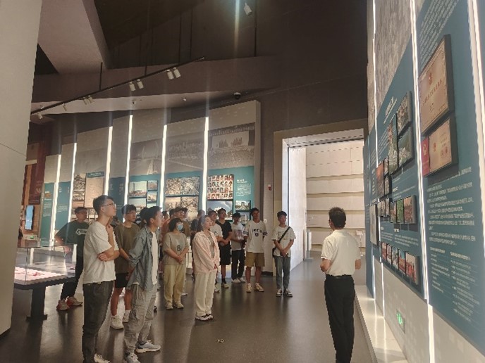 活動當天,同學們在5月10號上午的9:50分準時集結于博物館服務臺,隨后在講解員王永彬的引領下,參觀了《保定故事》第三展廳。展廳內,五四運動的激情和留法勤工儉學運動的壯志深深感染了同學們,歷史與青年奮斗的故事在這里交織,喚起了每位團員的愛國情懷,激發了他們投身國家發展的熱情。