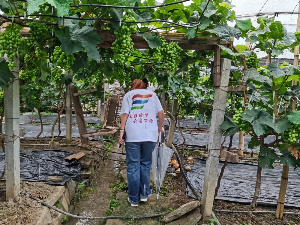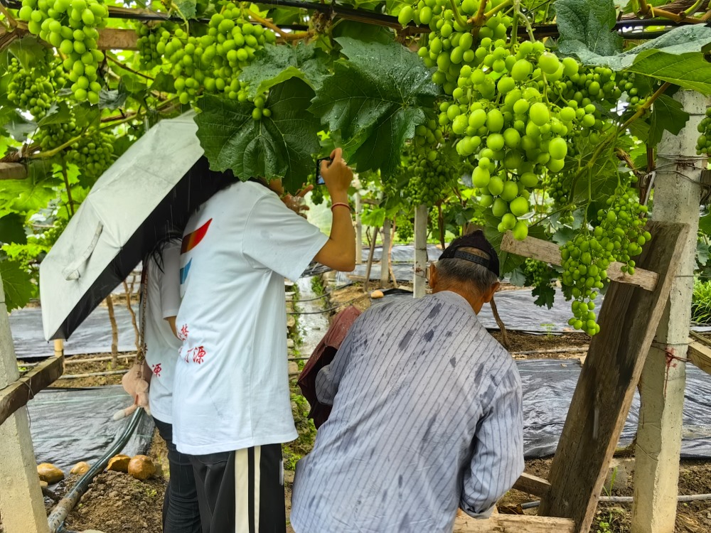 圖為種植戶帶領(lǐng)團(tuán)隊(duì)隊(duì)員進(jìn)行田野考察,深入葡萄園查看種植情況。 張雪琴 攝