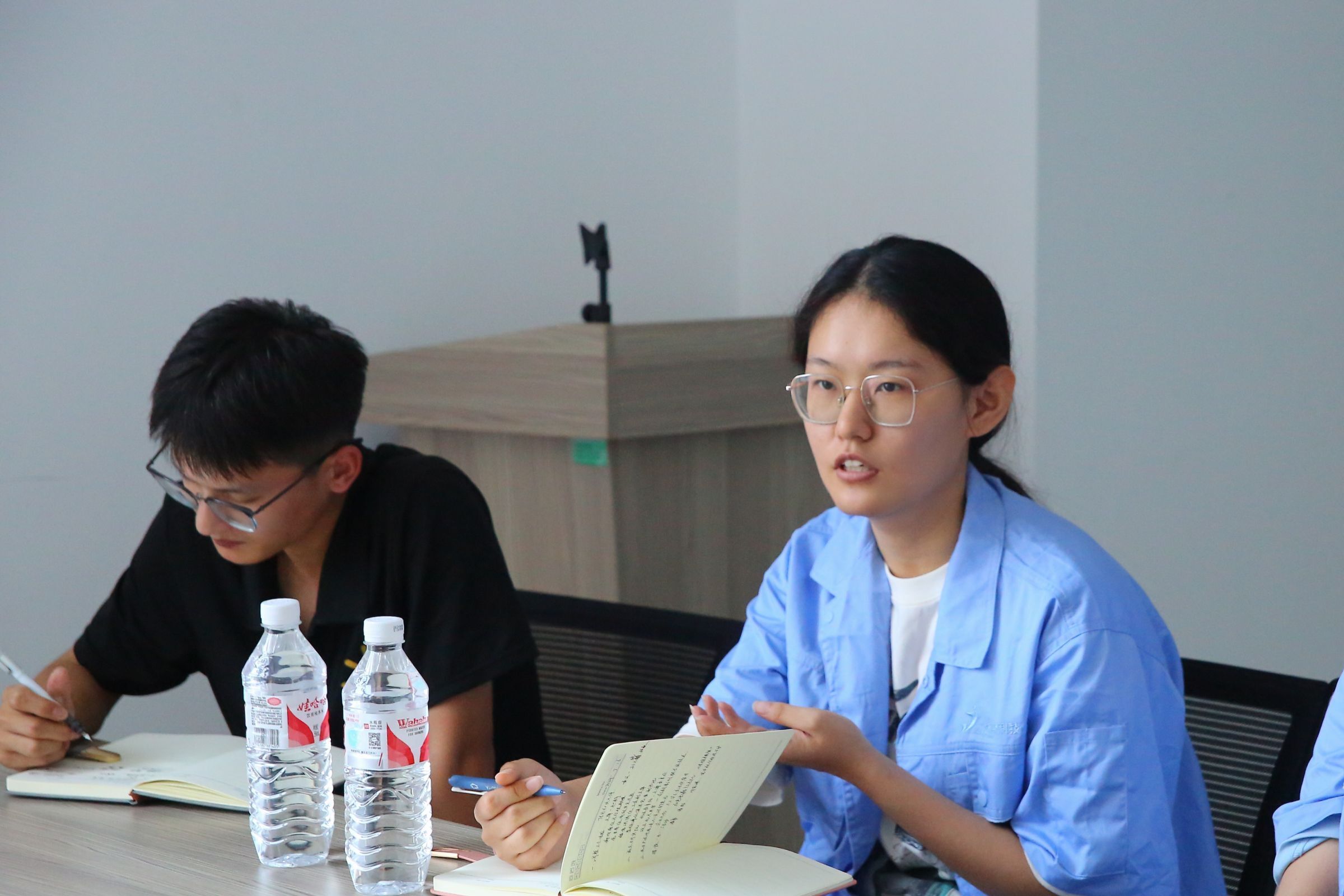 邊超在訪談時談到:“永聚科技里可降解材料在綠色發展方面的突出表現。以聚乳酸為例,聚乳酸來源于玉米或者秸稈,屬于可再生資源,可再生替代了不可再生材料,也充分展現了可持續化發展。”在訪談最后,實踐團成員與在永聚科技畢業于山東理工大學的本科生與研究生代表進行工作經驗分享。工作中也需要不斷學習,增強自身主觀能動性。