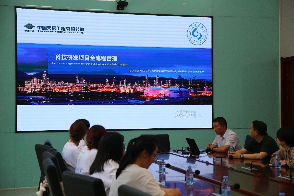 隨后,實踐團成員與天辰研發(fā)中心副主任馮傳密進行座談交流。他指出,“公司的發(fā)展需要研發(fā)來驅(qū)動工作,企業(yè)每年投入大量財力、人力在技術研發(fā)上解決創(chuàng)新問題,且創(chuàng)新是全方位、全覆蓋、全鏈條的創(chuàng)新,循環(huán)漸進,努力打造自己的技術研發(fā)產(chǎn)業(yè)鏈。”中國天辰作為國家首個中試基地,以傳統(tǒng)業(yè)務為根基,以實業(yè)為支柱,以工程服務為支撐,以研發(fā)為核心,突破“卡脖子”技術。其中科技成果有代表性的是丁二烯直接氰化法生產(chǎn)己二腈。此外,對于企業(yè)自身的發(fā)展優(yōu)勢,他提到,主要是看企業(yè)所掌握的技術是否把握在自己手中,其次是看對人才的管理,以及如何滿足客戶的需求。因而,企業(yè)堅持引入民營戰(zhàn)略資本,構建“創(chuàng)新團隊”機制,不斷激發(fā)企業(yè)內(nèi)生之動力。最后,對于經(jīng)驗交流,他表示,做研發(fā)就是十年磨一劍,開發(fā)一流的技術,作為項目負責人要養(yǎng)成及時匯報的習慣,及時總結、及時糾偏,不斷提高解決問題的能力。