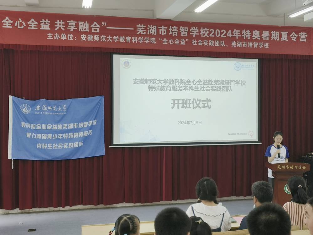 青春獻特教,培智育新芽。為關愛特殊教育青少年群體,貢獻大學生青春力量,助推國際特奧項目的開展,教育科學學院“全心全益”赴蕪湖培智學校暑期社會實踐團隊順利舉行開班儀式,幫助培智學校的智力障礙青少年生涯啟航,提升個人能力,促進健康成長。