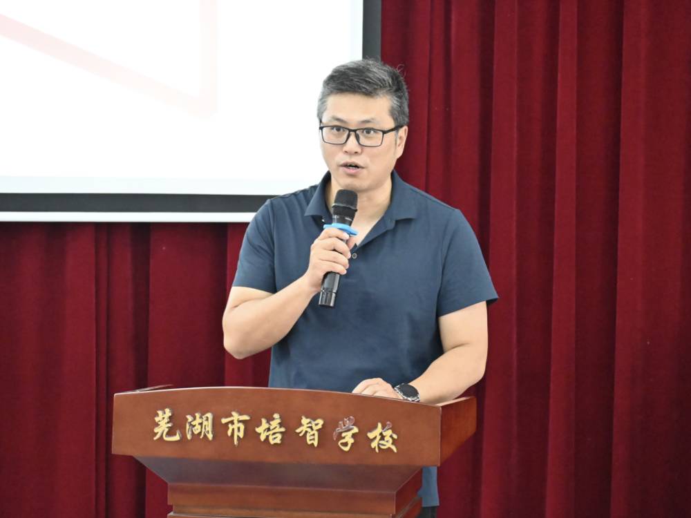 7月9日上午,實踐團隊于蕪湖市培智學校階梯教室正式舉行開班儀式,團隊指導老師金鳳仙、蕪湖市培智學校團支部書記張康、2023年實踐團隊隊長兼朋輩導生朱政、培智學校參加活動全體學生以及實踐團隊全體隊員參與本次開班儀式。