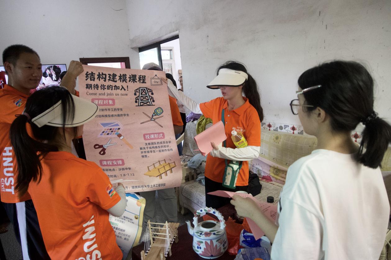 圖為志愿者邀請當(dāng)?shù)貙W(xué)生參加結(jié)構(gòu)建模課程。中國青年網(wǎng)通訊員 龍翔 供圖