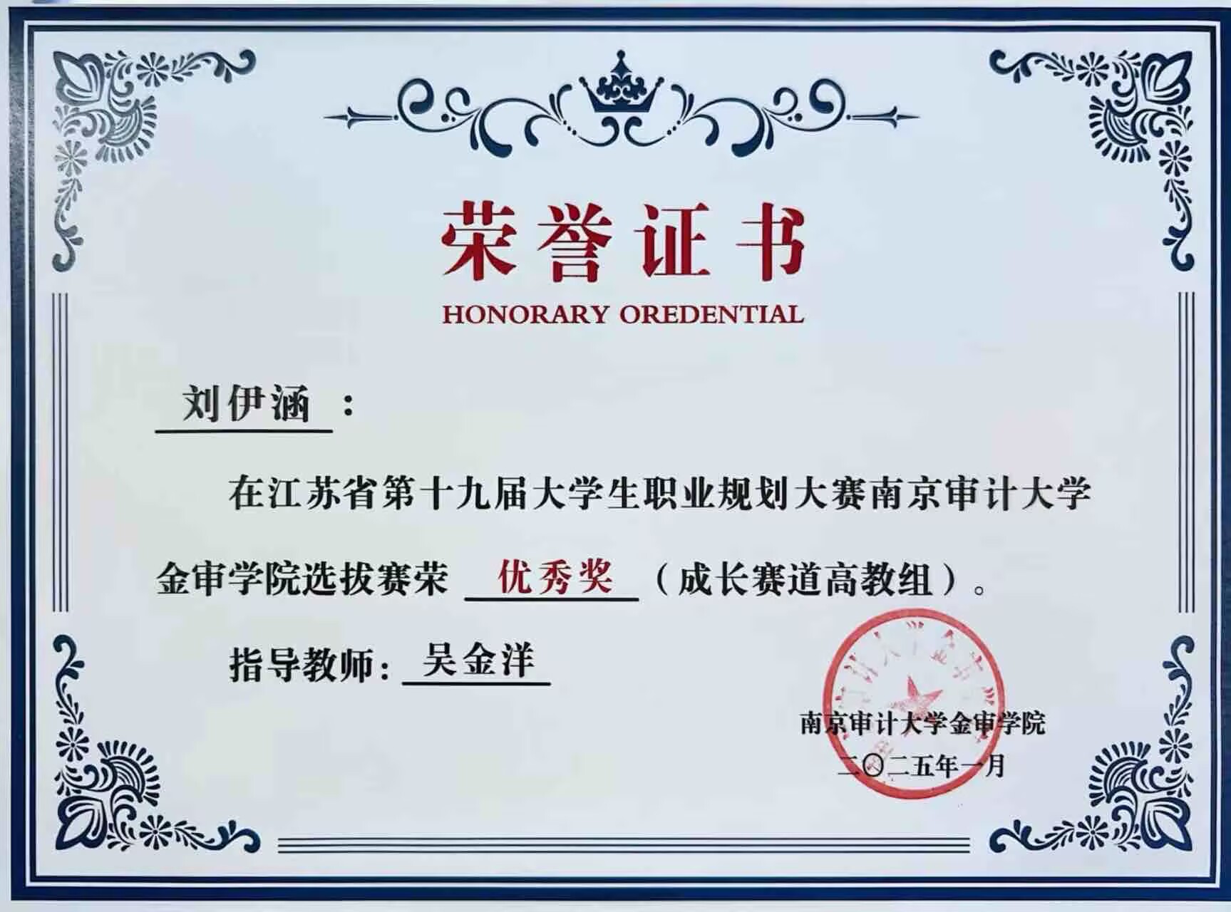 近日,南京審計(jì)大學(xué)金審學(xué)院金融與經(jīng)濟(jì)學(xué)院成功舉辦了職業(yè)規(guī)劃大賽校內(nèi)選拔賽,經(jīng)過激烈角逐,一批優(yōu)秀學(xué)生脫穎而出,展現(xiàn)了學(xué)院學(xué)子卓越的職業(yè)規(guī)劃能力和綜合素質(zhì),為學(xué)校和學(xué)院贏得了榮譽(yù)。期中24級(jí)金融實(shí)驗(yàn)班張雅晗獲得成長賽道三等獎(jiǎng),24級(jí)金融2班劉伊涵、24級(jí)金融3班左繹彬獲得成長賽道優(yōu)秀獎(jiǎng)。
