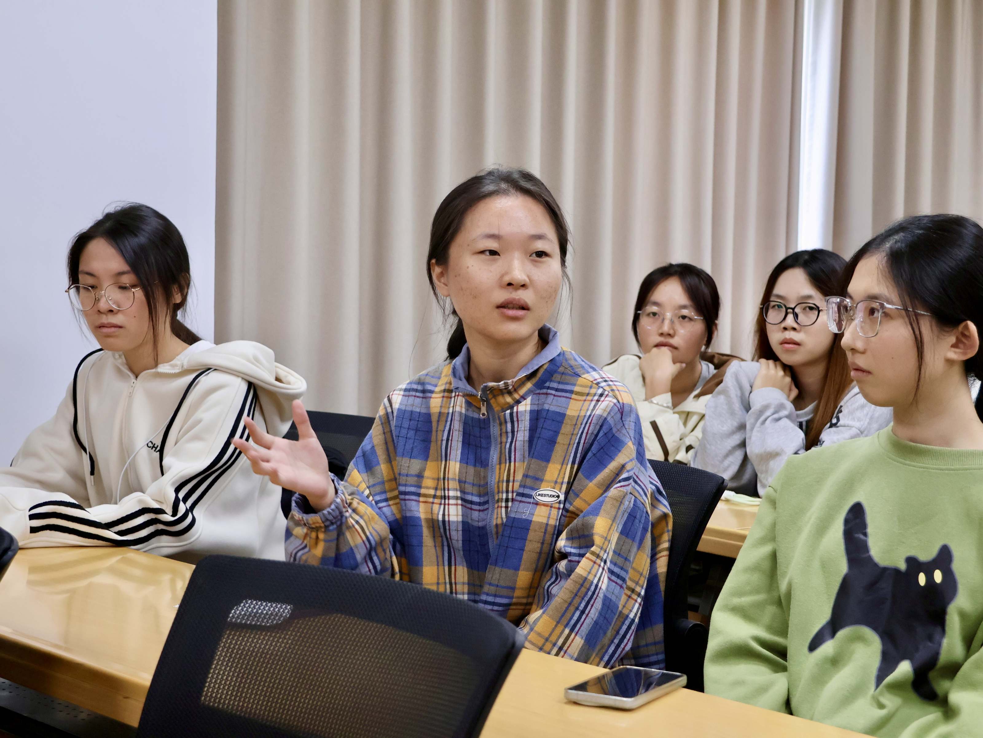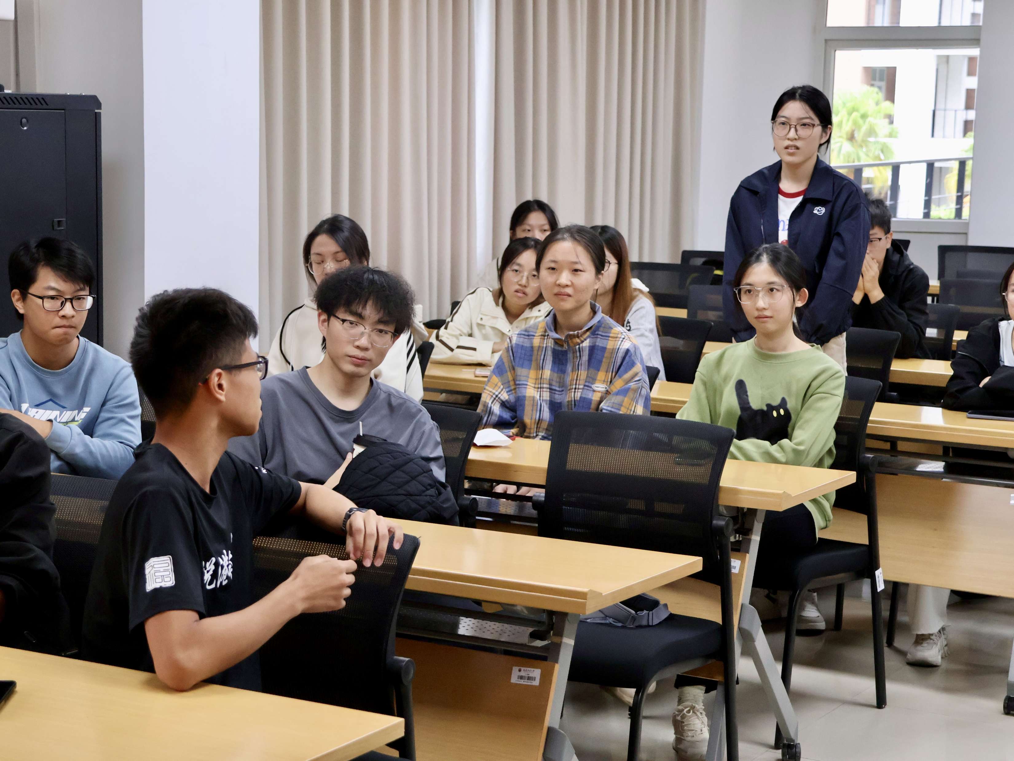 接下來的互動(dòng)環(huán)節(jié)中,2022級(jí)同學(xué)與支部成員們進(jìn)行了深入討論。黃仕湖同學(xué)分享了大三學(xué)年的時(shí)間安排,強(qiáng)調(diào)要兼顧學(xué)術(shù)成績(jī)與課外科研,尤其是參加學(xué)術(shù)會(huì)議和發(fā)表論文能顯著增強(qiáng)推免競(jìng)爭(zhēng)力。陳慧敏同學(xué)則提醒大家,面試時(shí)要保持自信,思路清晰,能夠從容地闡述學(xué)術(shù)興趣和未來研究方向。