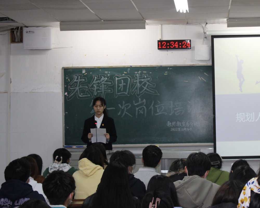 (通訊員 伍欣 謝曉東)為了引導學生們正確認識自身的個性特質,幫助學生選擇合適的職業,11月14日中午,湖南師范大學樹達學院教師教育系于樹達樓106教室開展以“規劃人生,我的人生我做主”為主題的第二次先鋒團校理論學習,教師教育系輔導員劉佳擔任主講人,此次會議由學生會辦公室志愿者負責人李雅瑄主持。