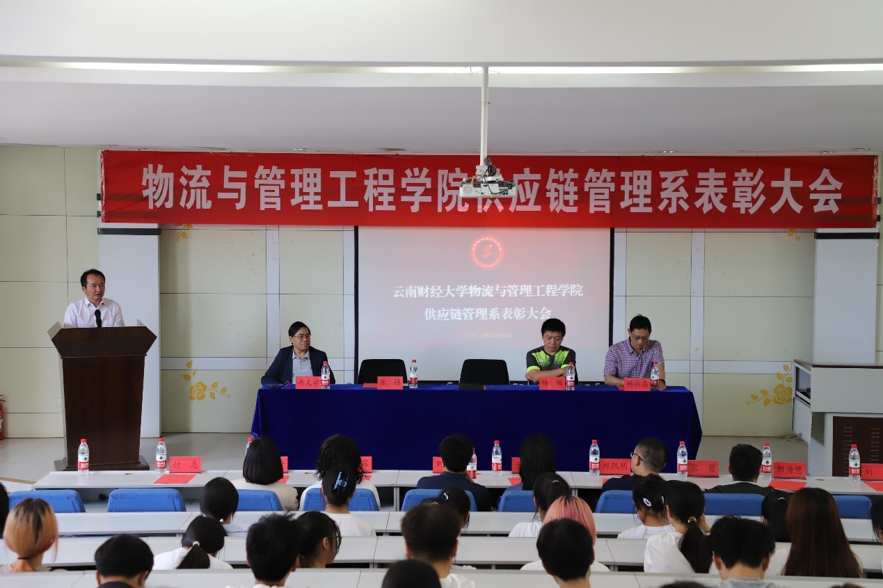 為推動(dòng)云南省新興專業(yè)建設(shè),梳理亮點(diǎn)經(jīng)驗(yàn)、總結(jié)遺憾不足,同時(shí)為表彰先進(jìn)、樹(shù)立榜樣,進(jìn)一步打造云財(cái)供應(yīng)人抱團(tuán)共贏發(fā)展,2023年6月7日,云南財(cái)經(jīng)大學(xué)物流與管理工程學(xué)院供應(yīng)鏈管理系召開(kāi)物流與管理工程學(xué)院供應(yīng)鏈管理系表彰大會(huì)。本次表彰大會(huì)由物流與管理工程學(xué)院供應(yīng)鏈管理系主辦,張強(qiáng)院長(zhǎng),冉文學(xué)副院長(zhǎng),楊潤(rùn)高副院長(zhǎng),楊緬副書(shū)記等領(lǐng)導(dǎo)出席會(huì)議,供應(yīng)鏈管理系全體老師、全體同學(xué)參加大會(huì)。