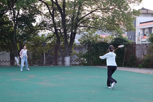 圖為兩名同學(xué)打羽毛球。庹怡婷攝