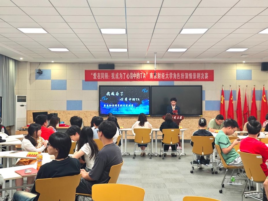 為進一步宣傳普及心理健康知識,豐富心理健康教育形式,在“全國大學生心理健康日”來臨之際,5月17日晚,由南京財經大學心理健康教育中心主辦,工商管理學院承辦的“愛在同頻:我成為了心目中的TA”角色扮演情景劇大賽在博文樓101智慧教室拉開了帷幕。本次活動邀請校心理中心李喆君老師、經濟學院心理輔導員梁少穎老師、工商管理學院心理輔導員趙菲老師擔任評委,入圍決賽的相關學院學生代表參加此次活動。