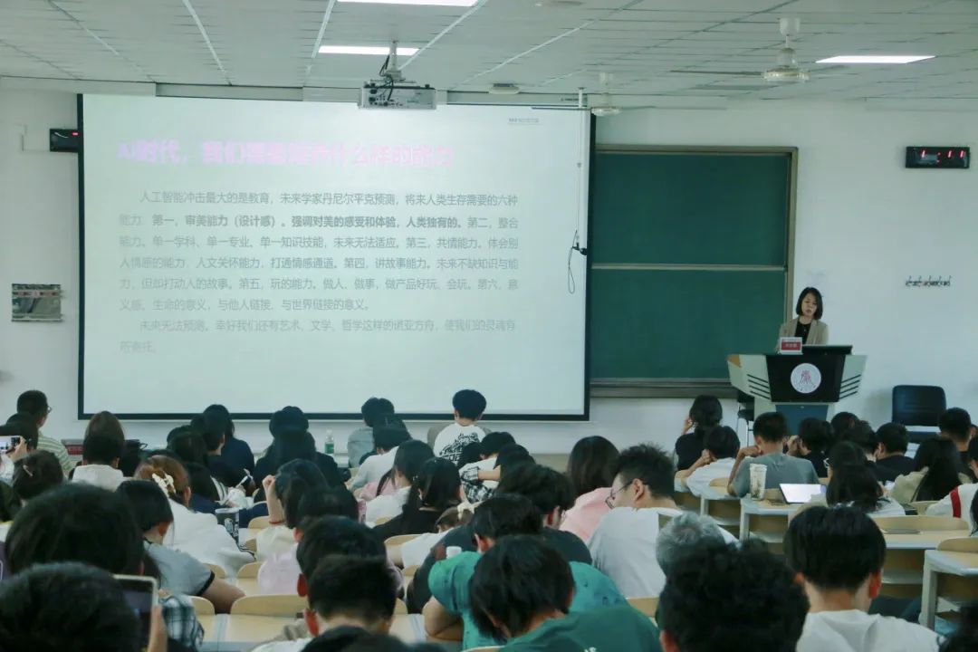 劉東霞以“藝術(shù)之用”為題,圍繞“藝術(shù)培養(yǎng)審美能力”與“設(shè)計(jì)成就美好生活”兩大主題娓娓道來,她首先闡述了審美修養(yǎng)的重要性,提出了提高審美修養(yǎng)的方法和途徑,通過巧妙融合國內(nèi)外建筑奇跡與文物修復(fù)案例,引導(dǎo)學(xué)生們從不同角度欣賞藝術(shù)之美,感受藝術(shù)背后蘊(yùn)含的文化內(nèi)涵和人文精神,帶領(lǐng)學(xué)生提升文化認(rèn)知與審美修養(yǎng)。