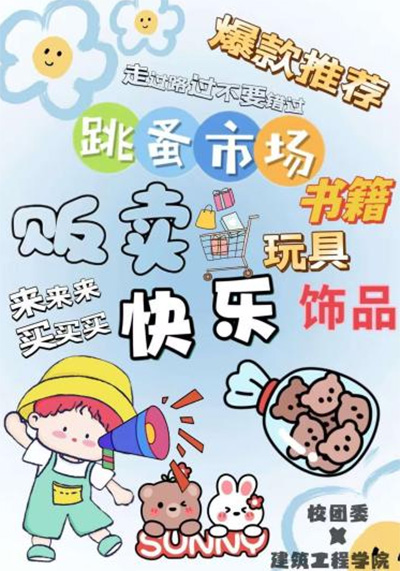 為豐富同學們的校園文化活動,落實“為學生辦實事”的具體體現(xiàn),并給同學們提供物品交換和出售閑置物品的平臺,建筑工程學院學生會于2024年11月8日下午15:00~18:00在英才大道籌辦了一場別出心裁、極具魅力的跳蚤市場活動。