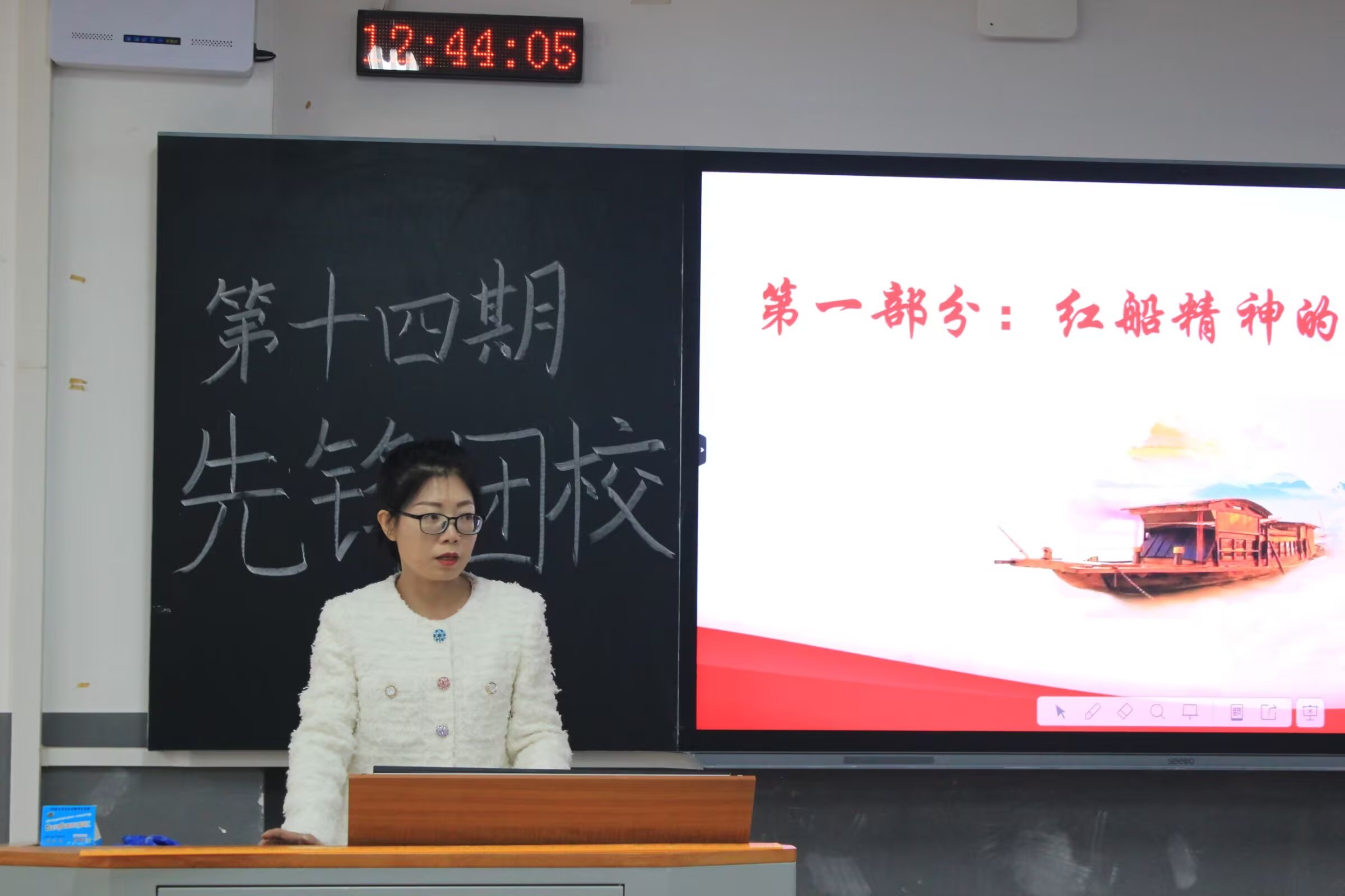熊椰講授了第一次理論培訓課。她介紹了紅船精神,對紅船精神的內(nèi)涵展開了闡述,并詳細講解了紅船精神中的首創(chuàng)精神、奮斗精神和奉獻精神。她希望同學們可以傳承紅船精神,從深層次理解新時代學生干部的使命擔當。