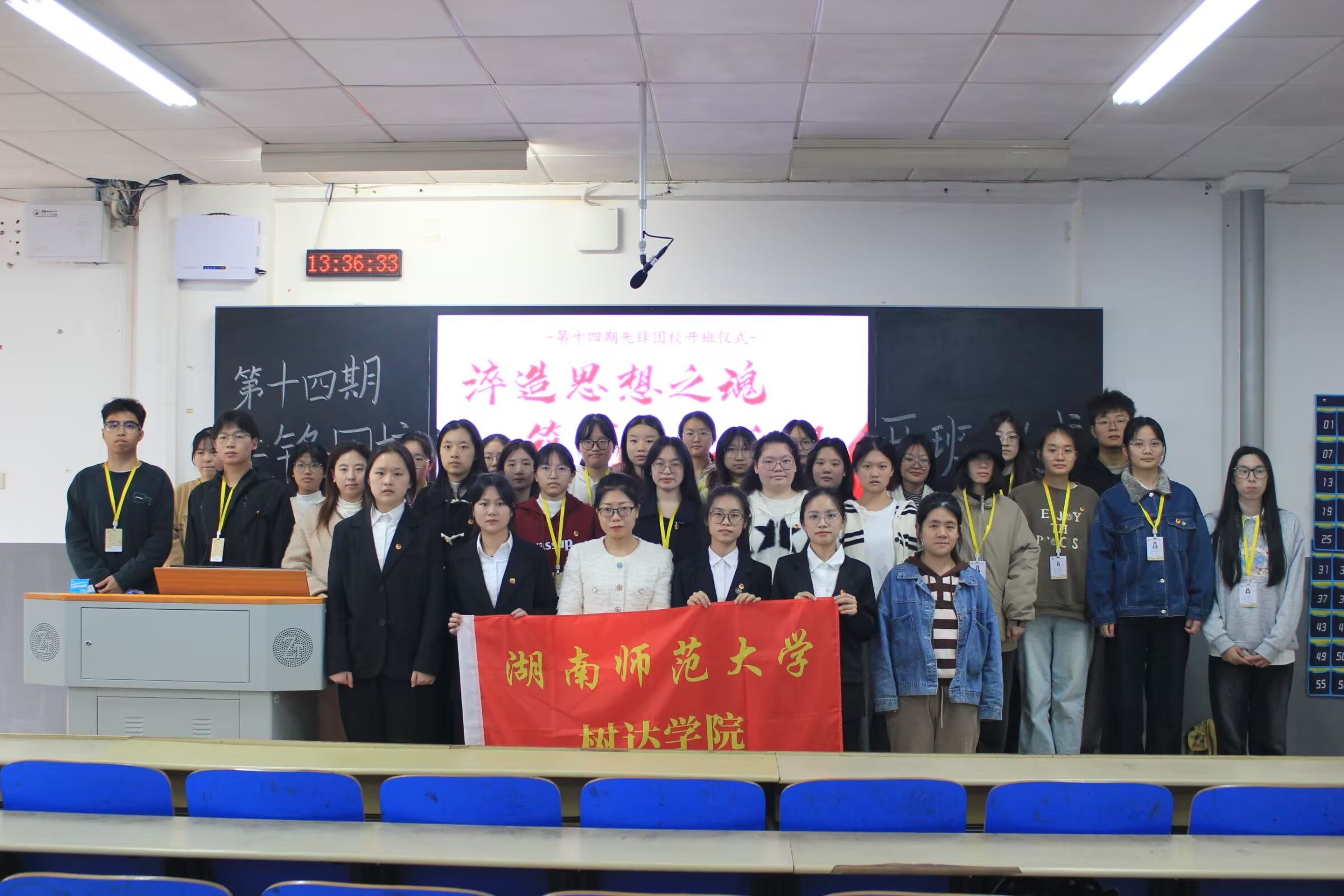 湖南師范大學樹達學院第十四期“先鋒團校”教師教育系分校全體學員參加此次開班儀式暨第一次理論學習課程。