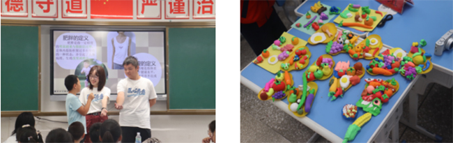 7月12日,實(shí)踐團(tuán)成員依據(jù)《中國居民膳食指南》解析食物營養(yǎng)分類,開展BMI指數(shù)計(jì)算教學(xué)。運(yùn)動(dòng)課程包含跳繩間歇訓(xùn)練、呼啦圈有氧運(yùn)動(dòng)等實(shí)踐。學(xué)員使用黏土材料制作膳食結(jié)構(gòu)模型,深化“膳食-運(yùn)動(dòng)平衡”健康理念認(rèn)知。