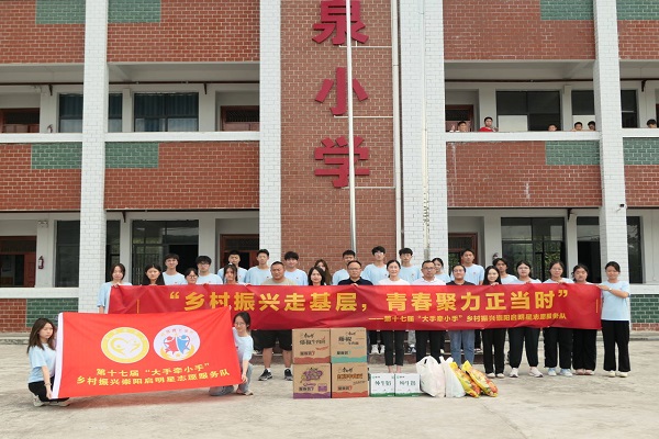 崇陽啟明星志愿服務團隊自7月4日從武昌理工學院出發抵達咸寧市崇陽縣港口鄉洞泉村洞泉小學開展支教活動,至7月12日以進行9天。武昌理工學院校團委領導協同崇陽縣當地負責人于7月12日下午14時前往洞泉小學向支教團隊表示慰問生活狀況并視察支教工作進展。7月12日下午14時,崇陽縣團委許玉祥書記、洞泉村村委會程書記、洞泉村小學徐劍良校長聯合武昌理工學院校黨委學生工作部李金永部長、校團委楊瑞書記、校團委羅豪副書記出發到洞泉小學對崇陽啟明星支教服務團隊的工作進行視察。